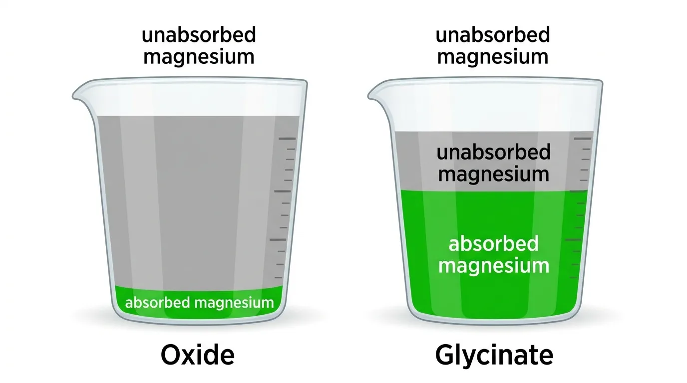 Глицинат доставляет в два-пять раз больше рабочего магния из той же массы добавки. Низкая цена оксида за грамм — иллюзия: в пересчёте на миллиграмм усвоенного магния он нередко оказывается самым дорогим вариантом.
