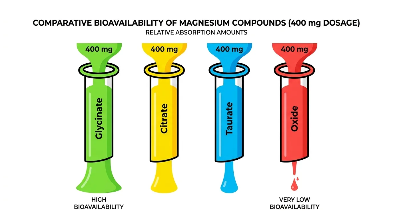 Сравнительная таблица: четыре формы магния — реальное усвоение из дозы 400 мг